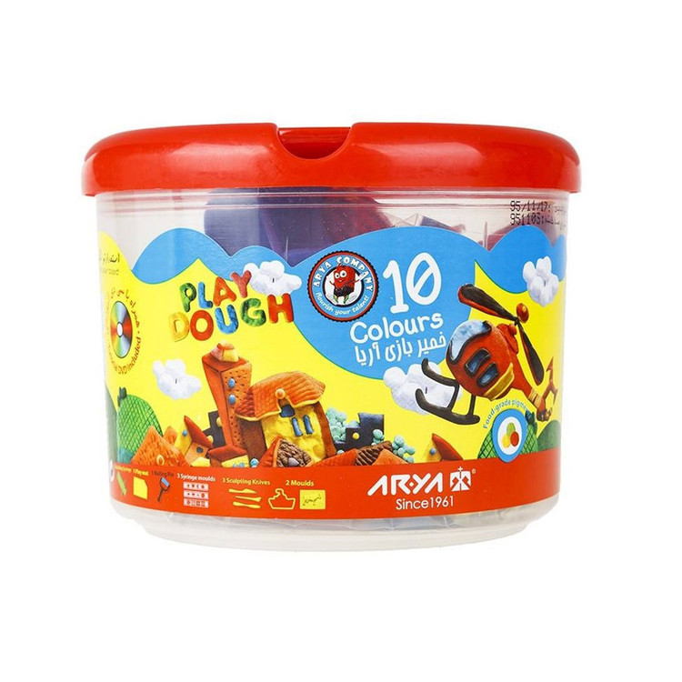 - 2 عدد قالب در دو مدل مختلف - 1 عدد غلتک - 3 عدد شابلون - 1 عدد سفره نایلونی - 3 عدد ابزار پلاستیکی - 10 رنگ خمیر 22 گرمی - 1 حلقه CD آموزشی خلاقیت با محصولات آریا - 1 عدد قیف فشاری جهت فرمدهی خمیر توسط سه شابلون با 12 طرح مختلف