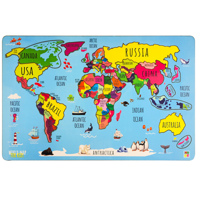 پازل چوبی بدون مواد مضر مقاوم و نشکن نقشه کامل جهان با چشم انداز جذاب برای کودکان