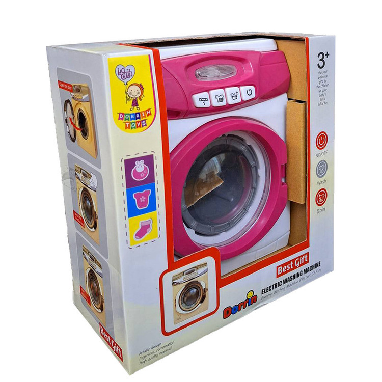 سایر توضیحات : اسباب بازی ماشین لباسشویی درین دارای قابلیت روشن شدن با باتری دارای قابلیت چرخش محفظه ی درونی دارای قابلیت باز شدن درب دارای دکمه روشن و خاموش دارای یک چراغ
