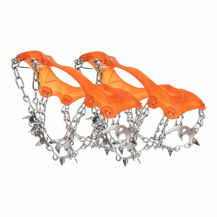 19 تیغه آبکاری شده و زنجیرهای مقاوم با لبه های جوشکاری شده لاستیک بسیار مقاوم با کشش عالی مناسب سایز کفشهای 39 الی 44 دارای کیف حمل یا کیفیت و قابل شستشو وزن 430 گرم به همراه کیف حمل